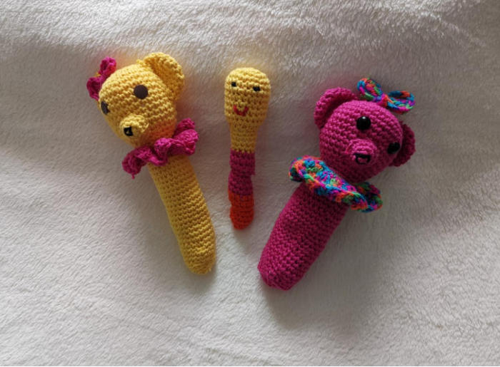 Besonders beliebt sind bei mir häkeln und stricken. Hierfür färbe ich auch gern mal selbst meine Wolle, was meine Werke zu Unikaten